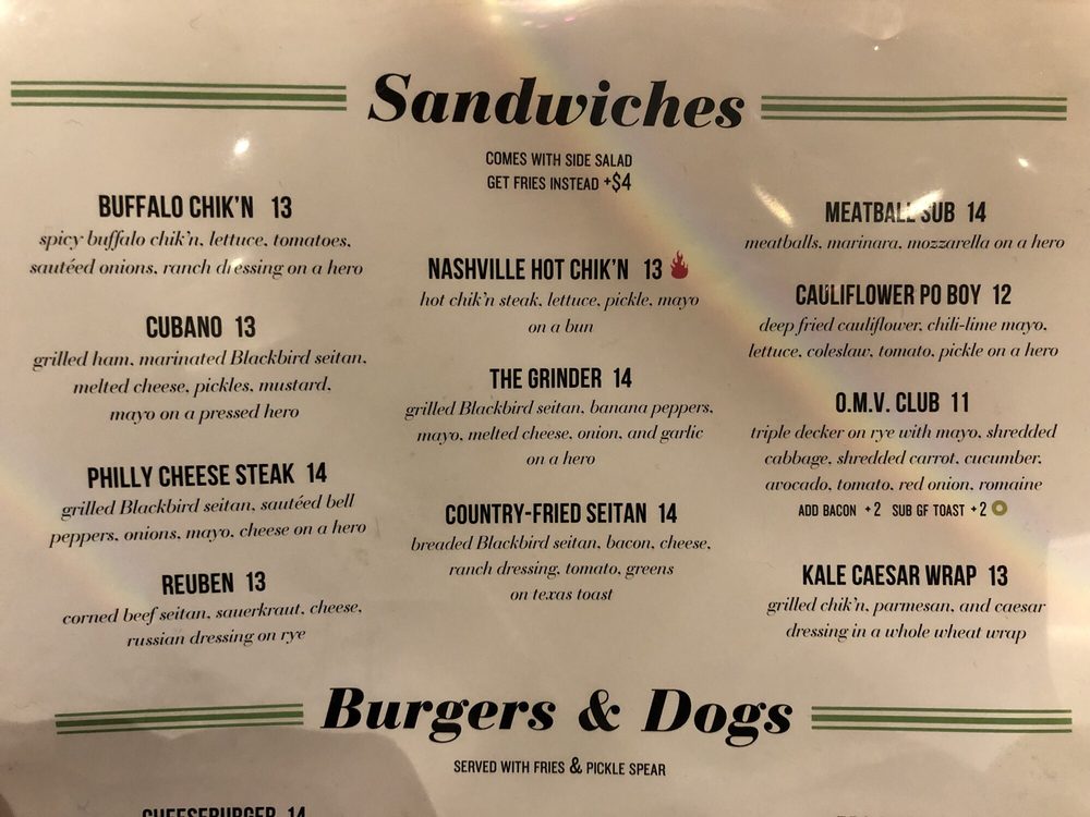 grilled Blackbird seitan, sautéed bell peppers, onions, mayo, cheese on a hero